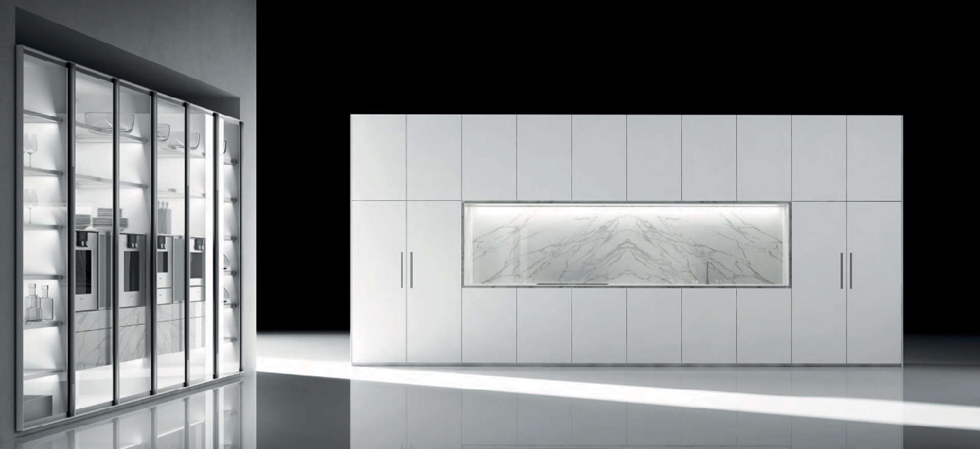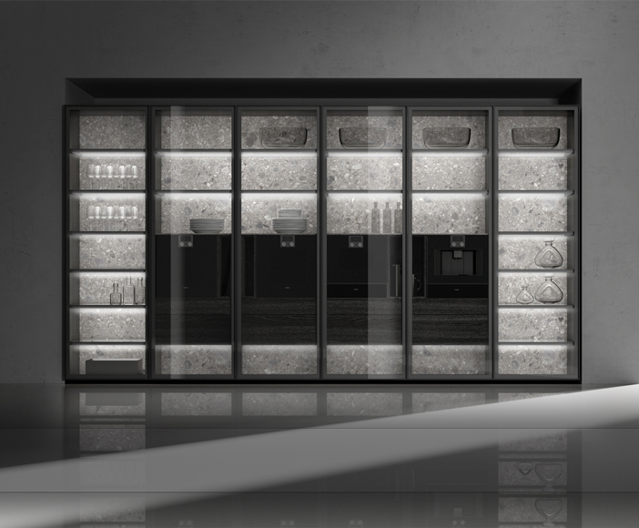 We have created this kitchen, that contains all the force of a rock in its central island, and the warmth of wood in its accompanying retractable columns. A kitchen as unique as the planet we live on.