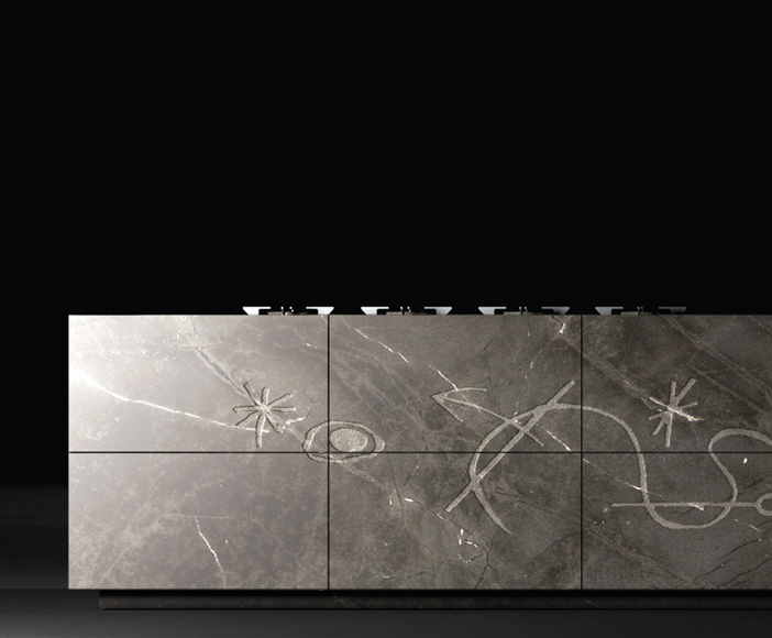 A new kitchen concept where the pictorial art of the canvas comes to the kitchen design and creates beautiful engravings on the natural stone enhancing the personality and uniqueness of this masterpiece.