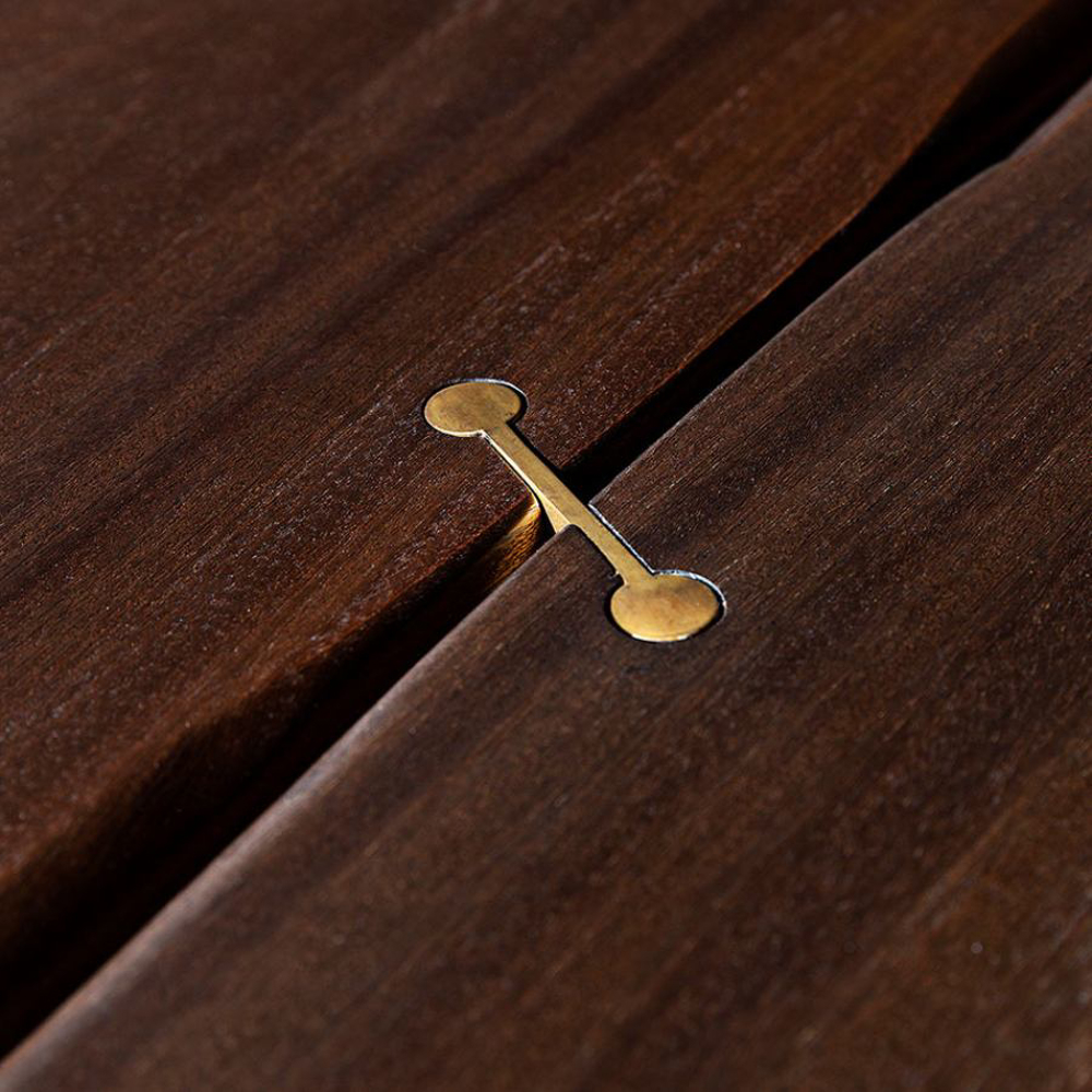 The plane is divided into two sections joined together by burnished brass connectors. An exclusive detail that gives 10th Joint Dining Table a signature style.