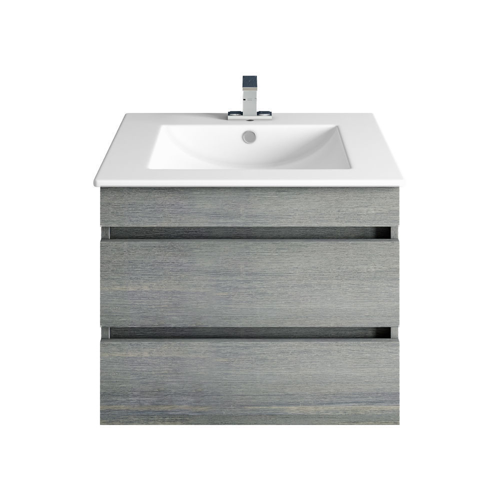 24" Concrete Gray Bathroom Vanity, Matt White Sink