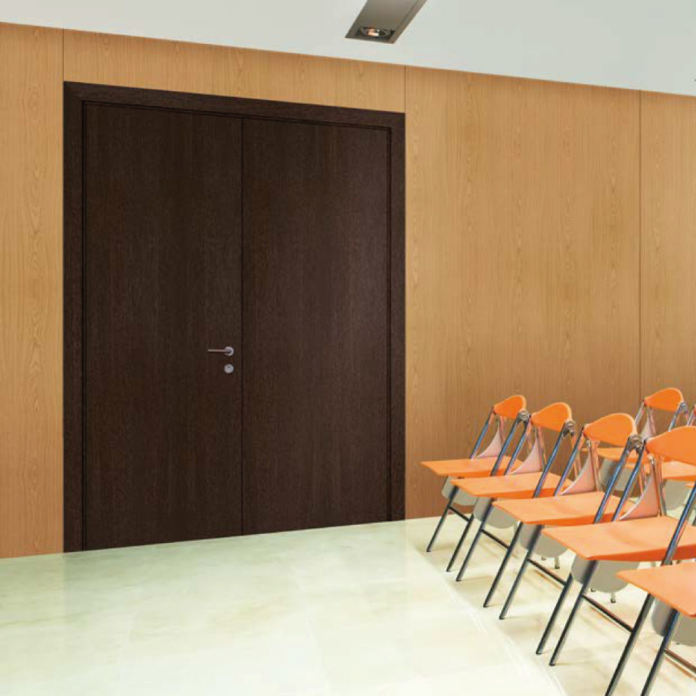 Solution which integrates door, frame and ironmongery, tested and certified by independent laboratories as resistant to fire 30 minutes.