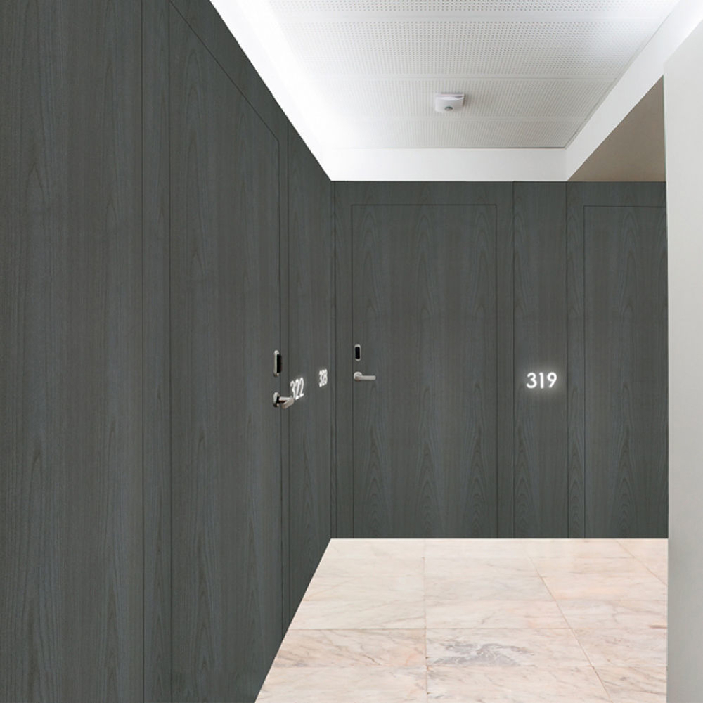 39DB sound insulated fire doors, suitable for use in hotel or office spaces, where sound insulation is a key factor.