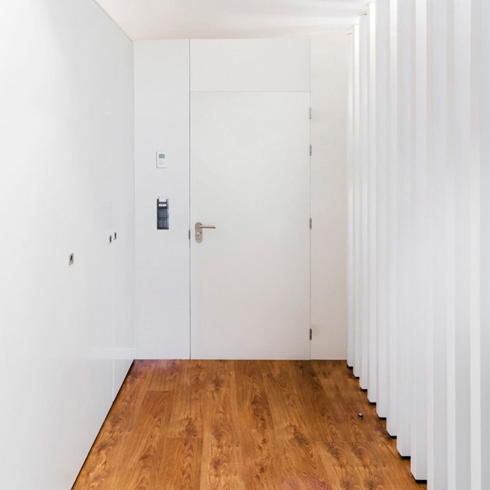 - 30-minute fire resistant frame with jamb in solid wood, extension and architraves in high density plywood