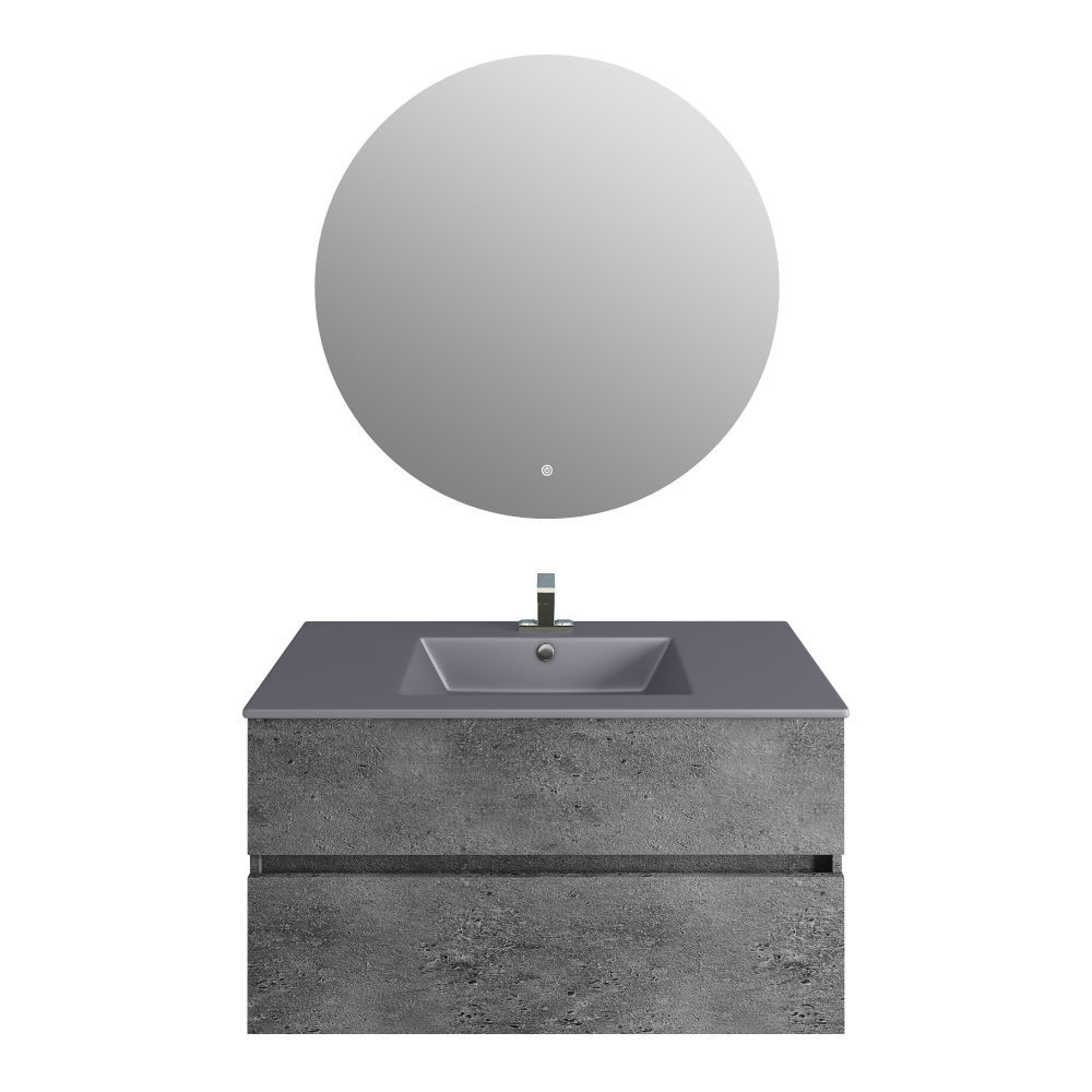 This contemporary and stylish Legnori bathroom vanity gracefully showcases a current silhouette combined with a minimalist, eye-pleasing design. It gives your bathroom a relaxed and peaceful look. Still looking slim and reserved, when we talk storage, its two soft-closing drawers offer ample space for toiletries, towels, and other bathroom accessories. The vanity comes with a high-end quality engineered stone countertop that seamlessly flows into a perfect matt grey drop-in sink. It also has a beautiful round Moon mirror that pulls together the whole set giving it an undeniable charm.