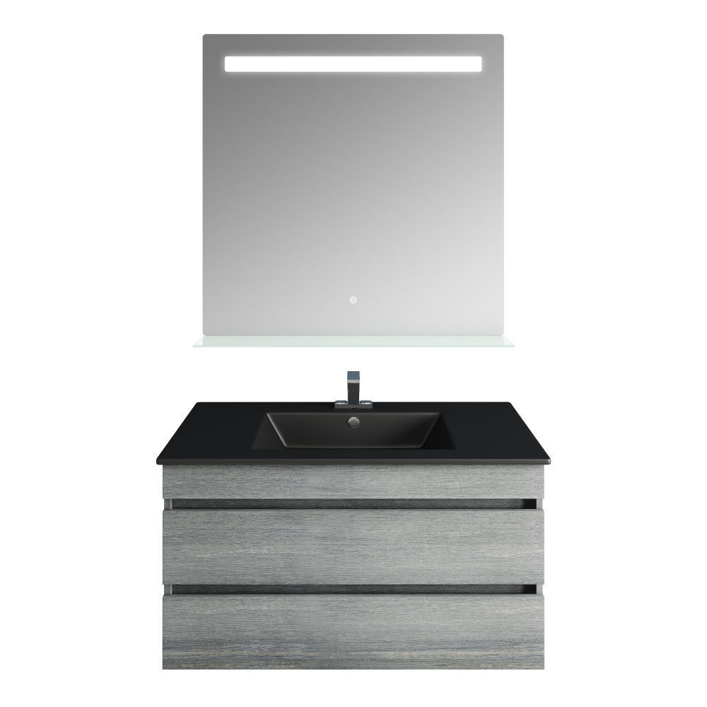 This slim and stylish Legnori bathroom vanity elegantly showcases a current silhouette interlinked with a minimalist, eye-catching design. It gives your bathroom a calm and relaxed look. Still looking reserved and sleek, when it comes to storage, its two soft-closing drawers provide surprisingly ample space for toiletries, towels and other bathroom accessories. The vanity comes with a superior quality engineered stone countertop that seamlessly flows into a perfect matt black drop-in sink. It also has a beautiful rectangular Ronda mirror that pulls together the whole set giving it an undeniable charm.