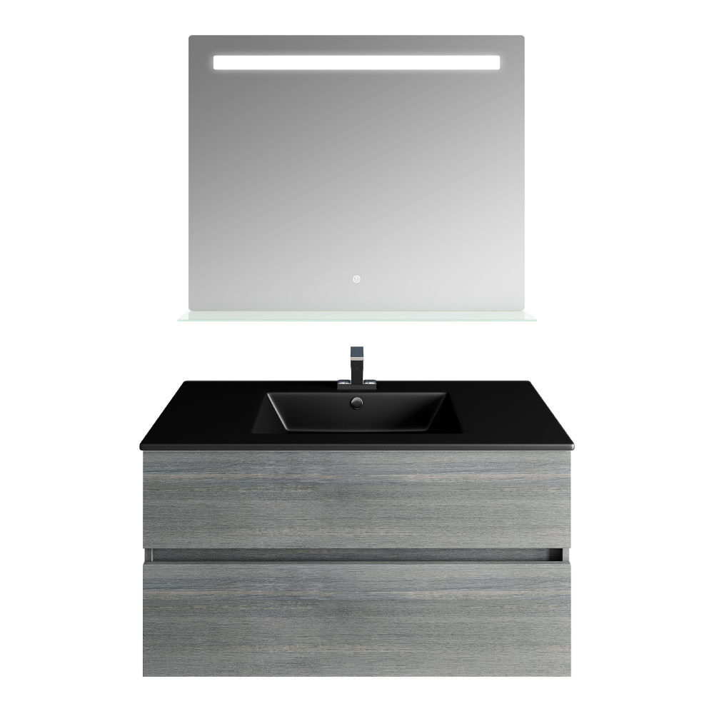 This contemporary and stylish Legnori bathroom vanity gracefully showcases a current silhouette combined with a minimalist, eye-pleasing design. It gives your bathroom a relaxed and peaceful look. Still looking slim and reserved, when we talk storage, its two soft-closing drawers offer ample space for toiletries, towels and other bathroom accessories. The vanity comes with a high-end quality engineered stone countertop that seamlessly flows into a perfect matt black drop-in sink. It also has a beautiful rectangular Ronda mirror that pulls together the whole set giving it an undeniable charm.