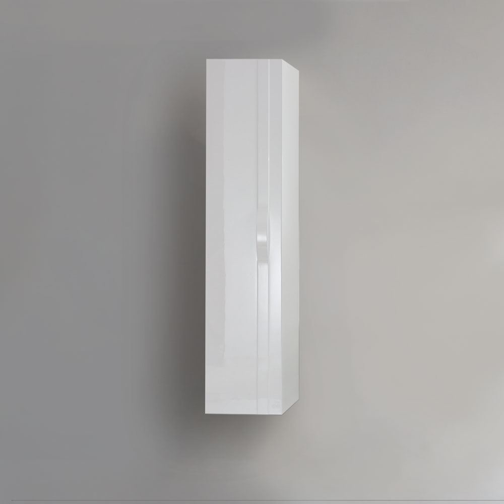 This modern, wall-mounted Riel glossy white bathroom vanity set with mirror and side cabinet will be appropriate for any style and taste.