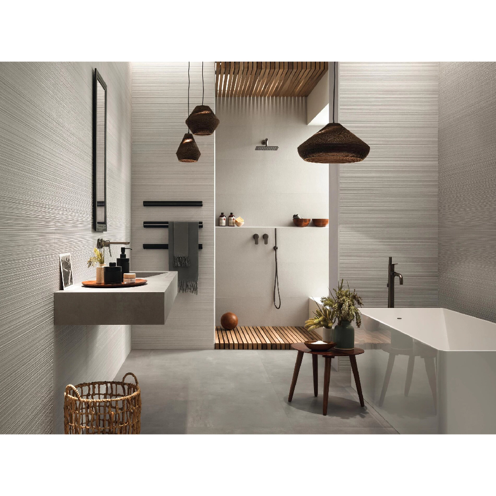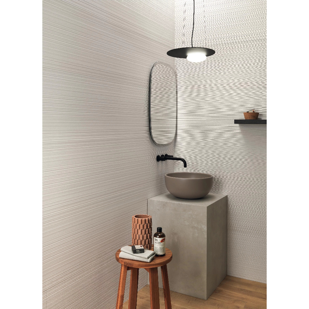 Inspired by the material suggestions of hand-worked stone, the collection brings the decoration of indoor walls into a new dimension of contemporary interior design, where attention to detail and the authenticity of the structure confer a natural character to any living space. The range has a single field in three neutral colors embellished with five different three-dimensional reliefs. Two capsule products designed for Atlas Concorde by Piero Lissoni further expand the design possibilities of 3D Wall Carve, offering new creative perspectives.