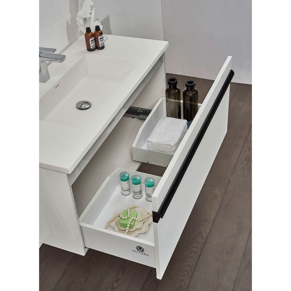 The white Natt bathroom vanity with its accurately designed handle will be ideal for any modern designed bathroom. The great combination of the glossy white finish and matt black handle will give that calm and comfortable atmosphere to your bathroom.