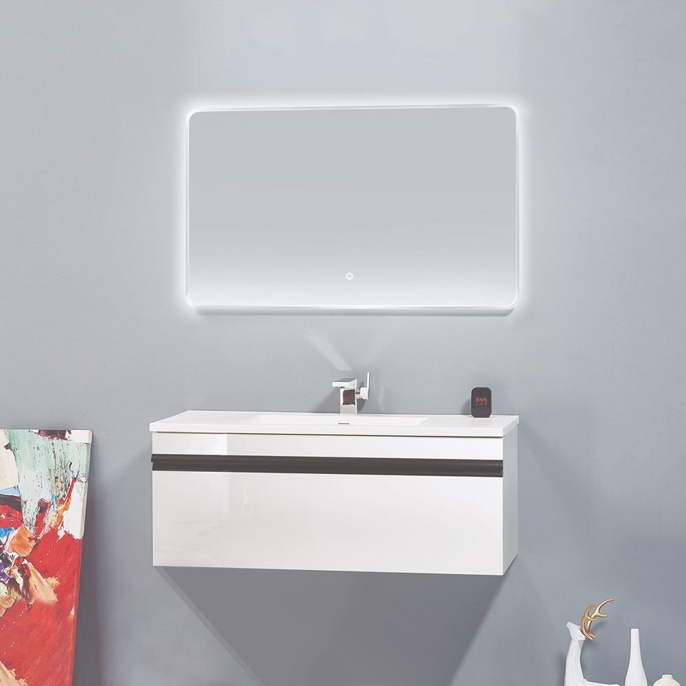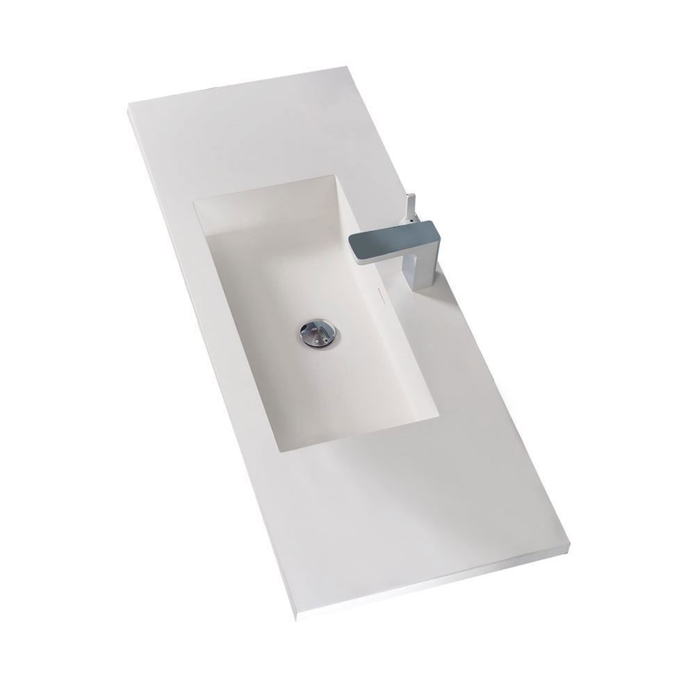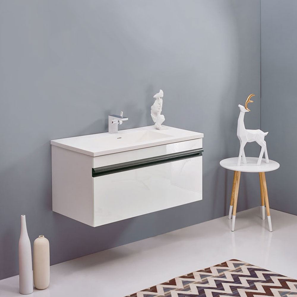The white glossy sink is ideally matching with the modern vanity Natt. The ideal combination of an architectural plywood and rubber sink will give that calm and comfortable atmosphere to your bathroom.