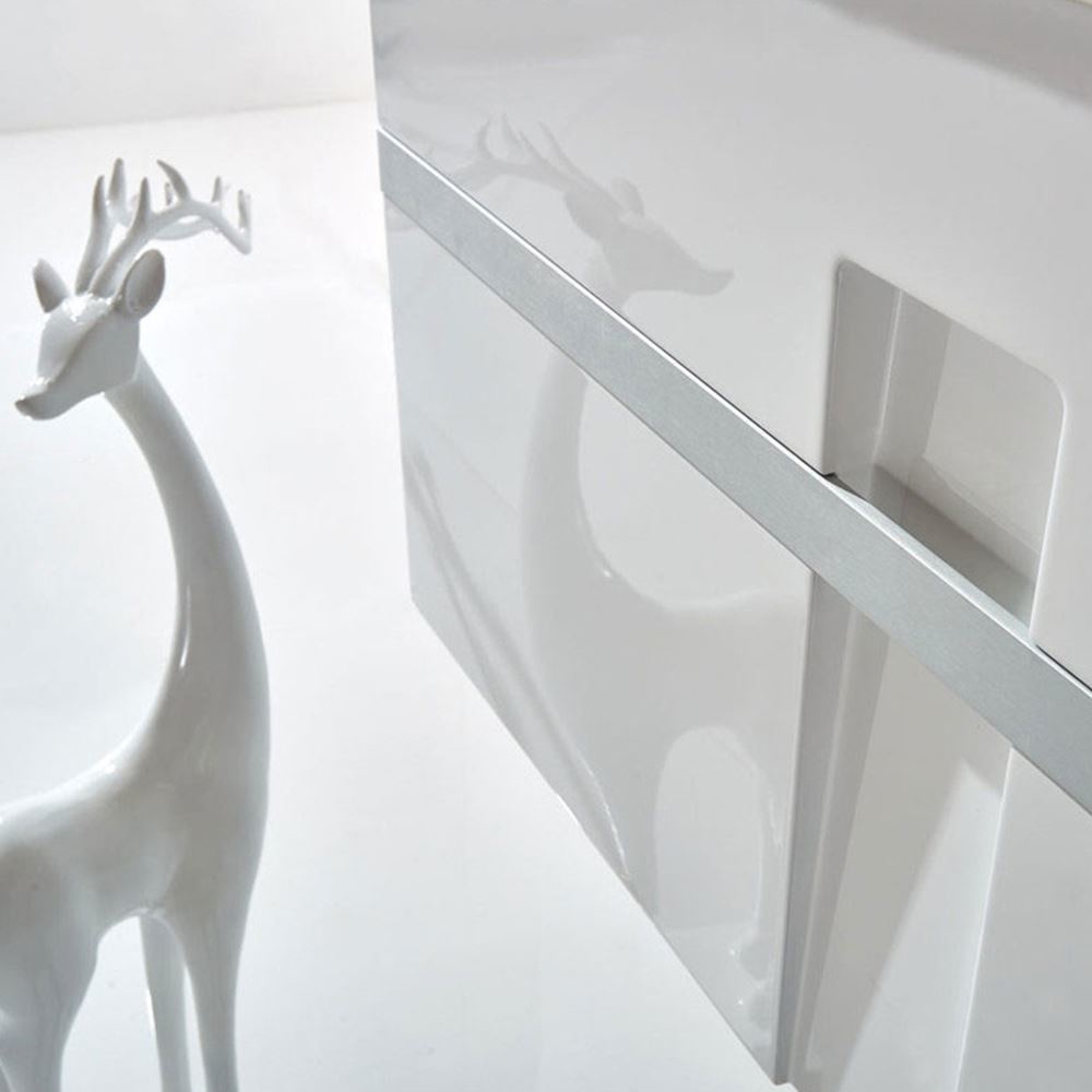 • Glossy White Lacquer Finish and Rubber Countertop