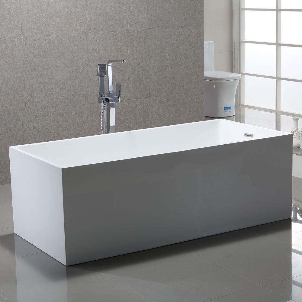 With modern design this white freestanding tub creates harmony and balance. It has ergonomic clean lines to create a luxurious relaxing bathing experience.