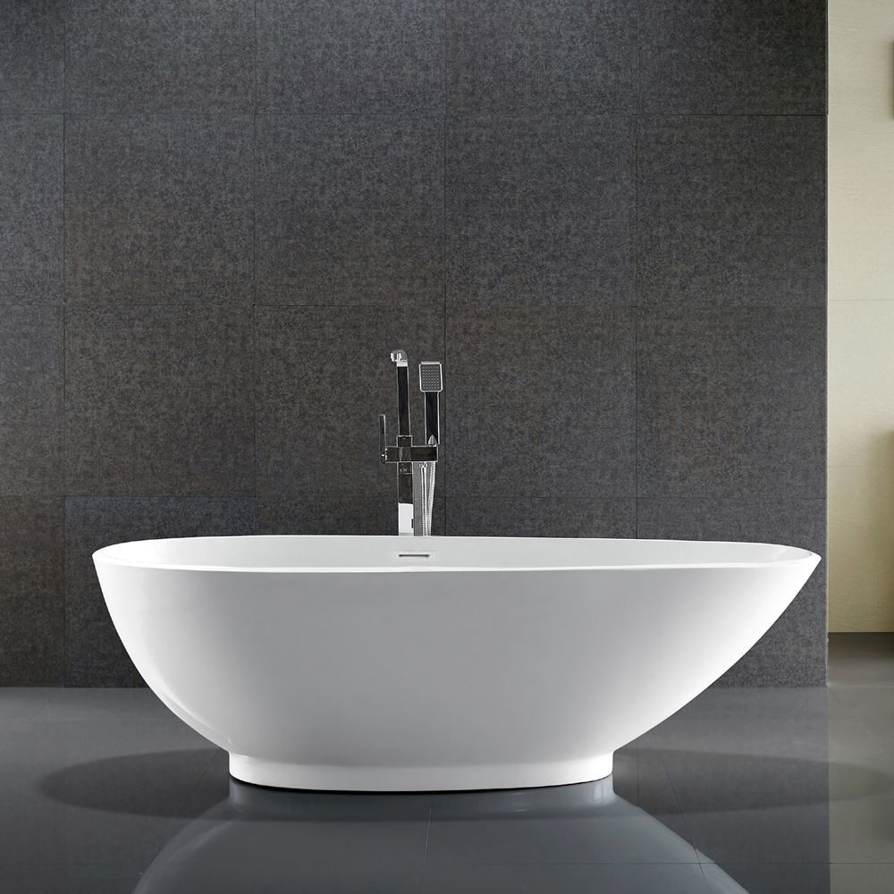The tub is freestanding, it’s made from premium quality acrylic and is reinforced with fiberglass for a durable white high glossy finish, that will not stain or fade. Oval in shape, this elegant piece can be easily installed, easy to clean and maintain.