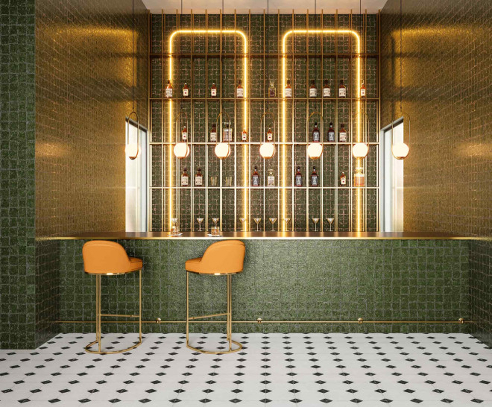 Abstra Collection: where art and modernity converge Immerse yourself in the avant-garde of design with the Abstra collection. Its wall tiles feature captivating abstract graphics, high-gloss ceramic tones such as Blue, Green and Ochre, and metallic details that add sophistication.