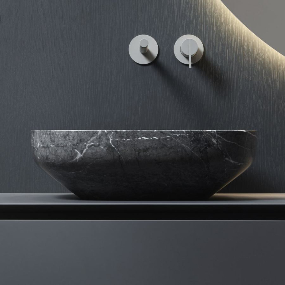 Completely takes advantage of the potential of Solid Surface and Stone, with a reduced thickness and a contemporary shape generated by the union between rigorous lines and soft curves. Ago is the top mount sink with a sculptural form in which its volume narrows towards the bottom defining a large and deep basin. The modern and transversal image make it perfect to fit any type of furniture.