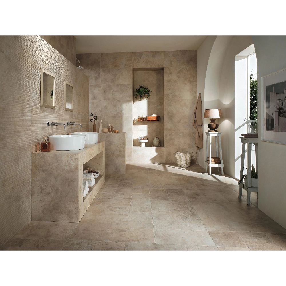 A contemporary collection that recalls the original flooring of an 18th-century French villa. This is the inspiration behind Aix, formed of ancient calcareous stones used as a matrix and recovered one by one in sheets of various sizes.