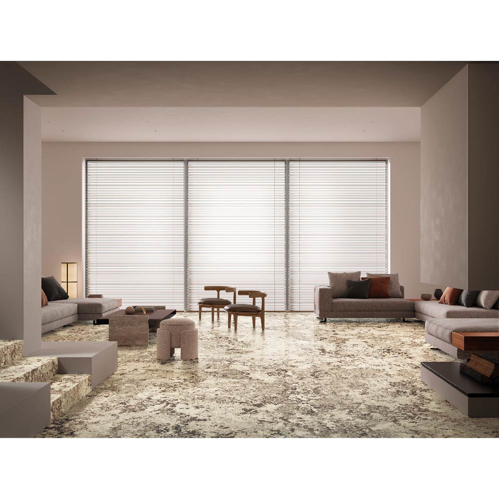 With its granite-effect patterns and subtle veining, Alaska White brings strength, elegance, and timeless sophistication to floors, walls, and feature surfaces. Available in large-format slabs, it combines striking design with durability and functionality, perfect for modern interiors and architectural projects.