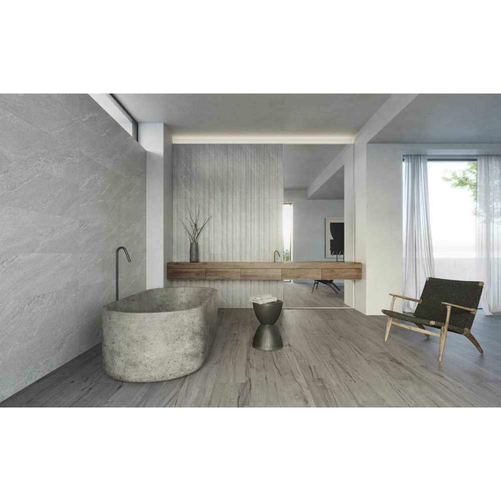 Discover the Alchemy Wall collection: a selection of elegant 33x100 white-body wall tiles combinable with the porcelain floor tiles in the Alchemy Floor collection.