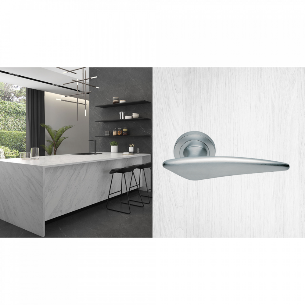 The collection is characterized by a wavy shape and simple modern design that suits perfectly to decorate any design aesthetic. The contemporary and stylish door levers will enhance the look of every interior door and make it a true conversation piece.