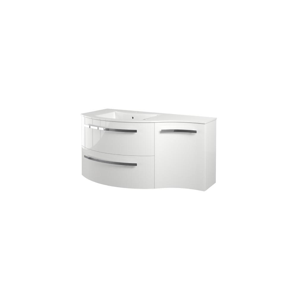 Yara 43" vanity with right concave cabinet in White