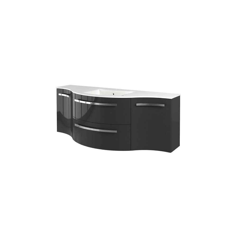 Yara 52" vanity with left round and right concave cabinet in Slate