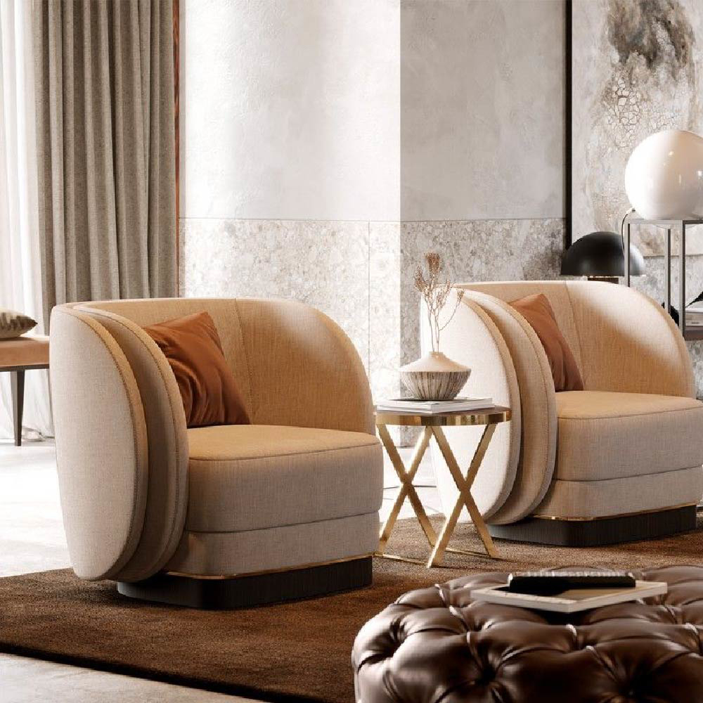 Ambrose is an all-time favorite armchair with luxe fabric wrapping around the ergonomic back, arms and seat for a sophisticated and comfortable armchair.