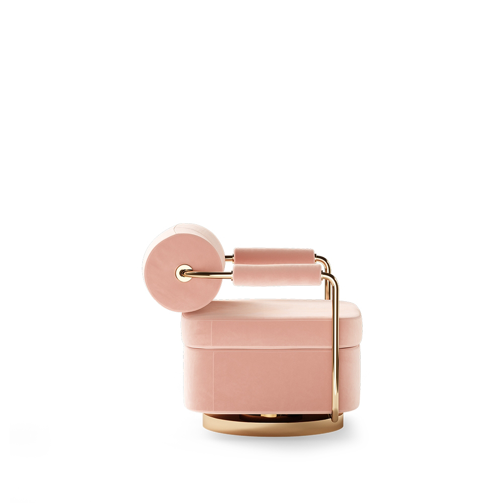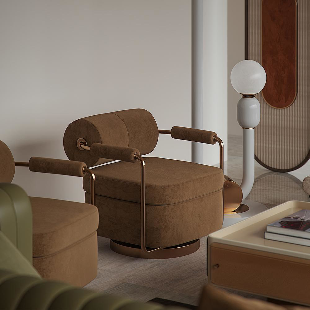 The Anderson armchair is the materialization of midcentury modern style. With geometric shapes that merge with brass details, this armchair will bring a vintage touch to your projects.