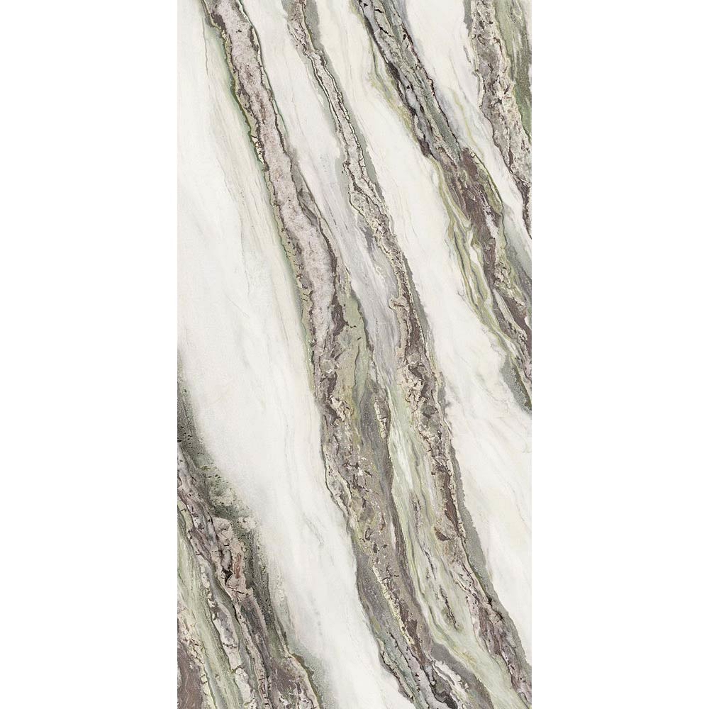 Fullbody 3D: The exclusive FULLVEIN3D technology graphically recreates, in perfect continuity, the veins of the stone surface, even within the entire thickness, just as in natural marble. This technology replicates the visual effect of what nature has created over the millennia, mimicking the aesthetics of the marble both on the surface and the body of the large tile. The technical and aesthetic evolution of large tiles with through-body veining enable the creation of furnishings or worktops for bathrooms and kitchens with a more natural feel, as the visual effect of the marble remains unaltered even after the cutting, drilling and finishing operations needed to obtain the finished product.