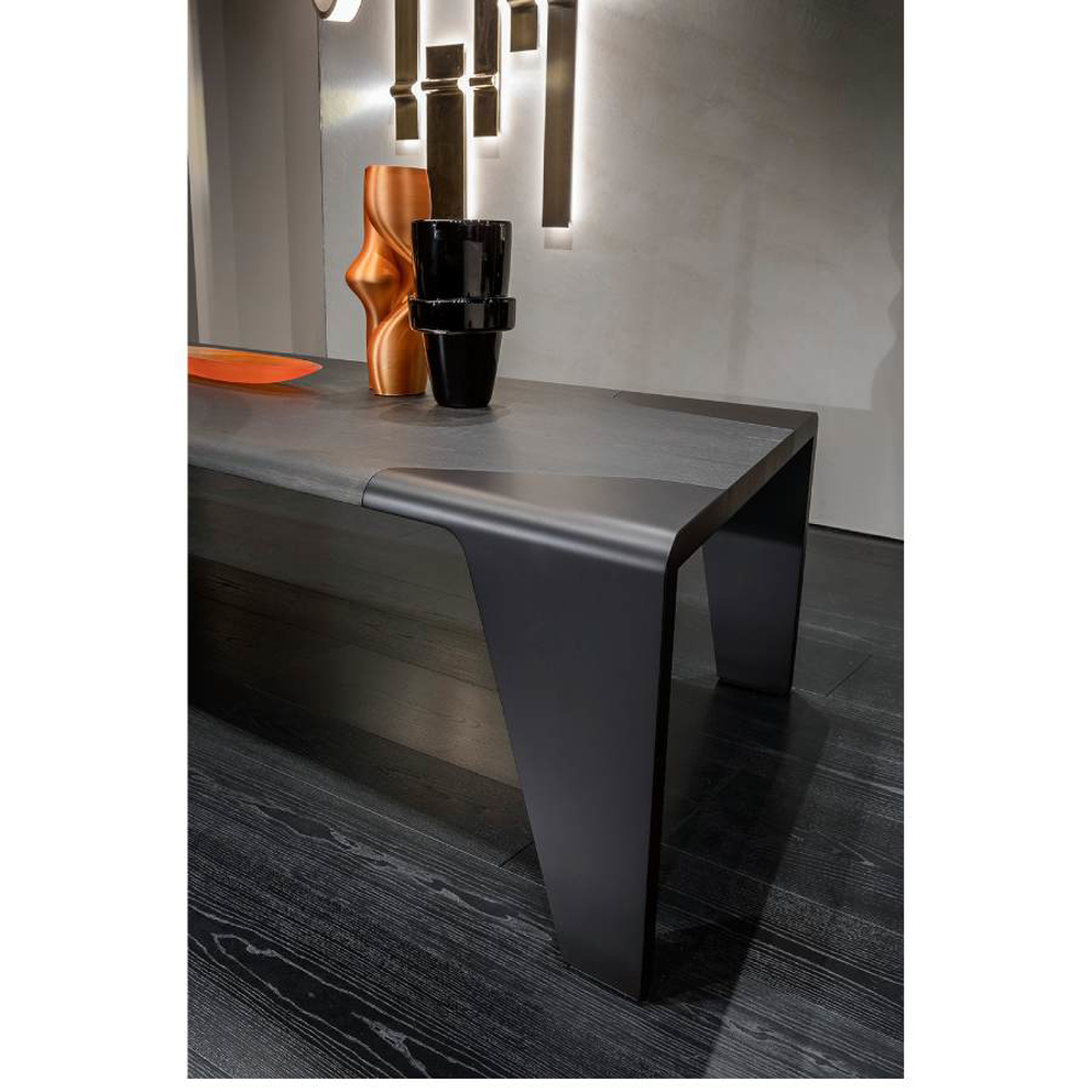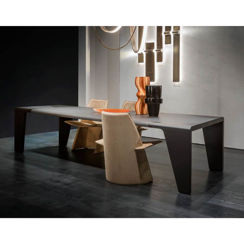 And so the top of this table and its legs are one, which was shaped in “free form” as the result of a strong storm, which it managed to resist despite its lightness, thanks to tenacity, presence and strength of his body. The very thick legs merge with the top and, through the irregular geometries of the joints and the use of materials, play in creating an object that lives on similarities or differences.