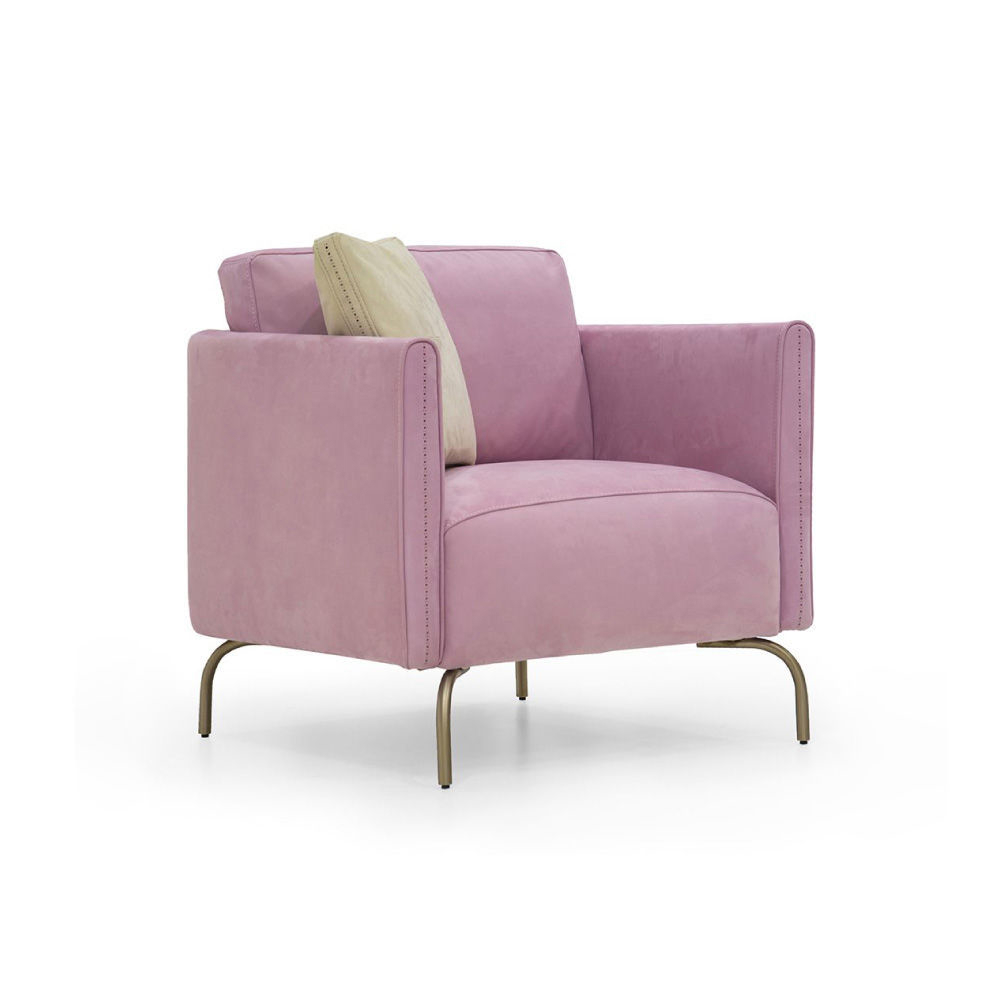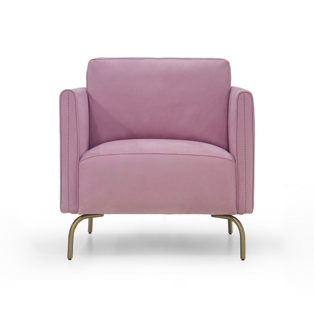 In leather Nabuk col. Snow, metal base in light gold finish.
