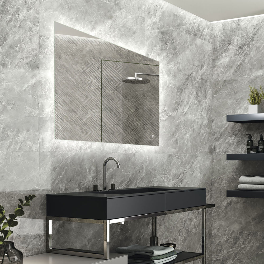 5mm copper-free mirror with safety film backing Acrylic diffuser all-around at the backside of the mirror to avoid visible hot LED dot