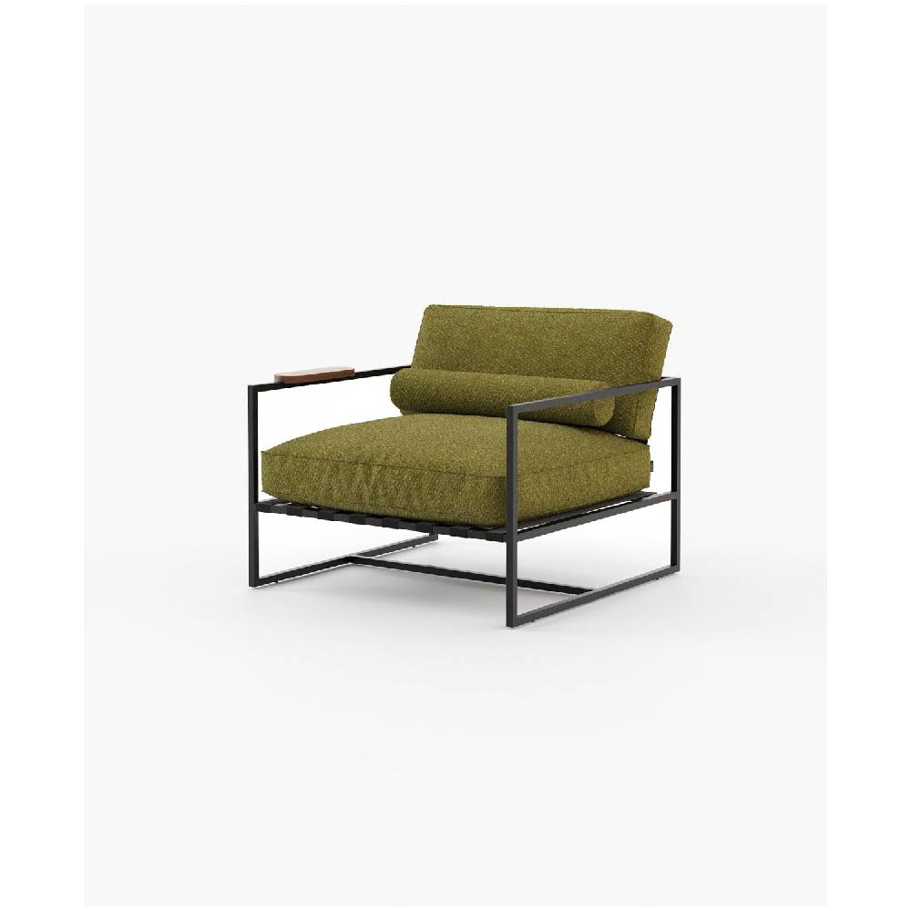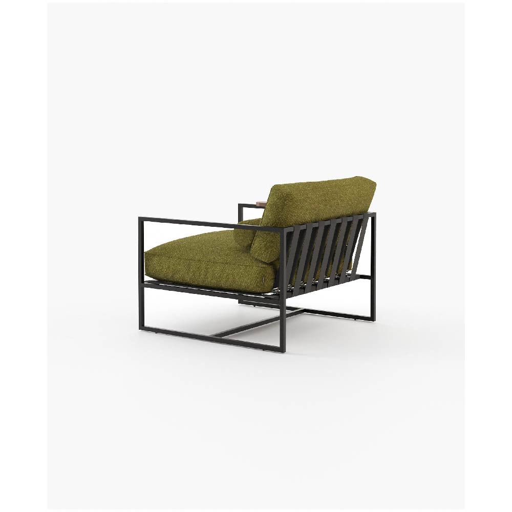 Versatile and stylish, the Badi outdoor armchair can stand alone as a statement piece or be paired with the Badi sofas and poufs to create inviting outdoor comfort zones. With a textured black iron frame and fabric upholstery, this chair promises long-lasting comfort and style that will enhance any outdoor space.