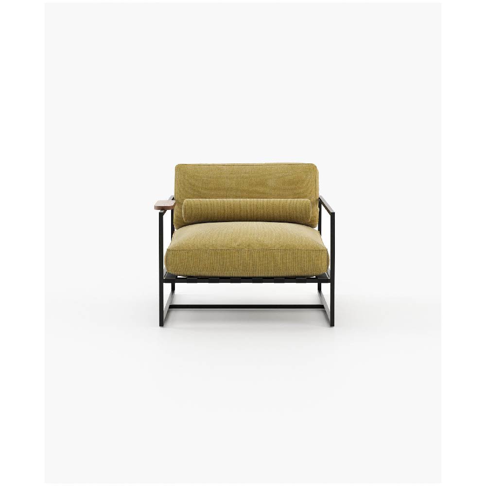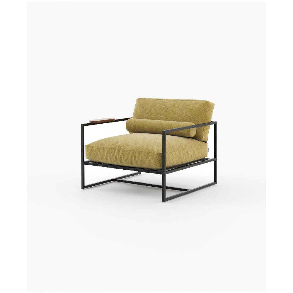 Versatile and stylish, the Badi outdoor armchair can stand alone as a statement piece or be paired with the Badi sofas and poufs to create inviting outdoor comfort zones. With a textured black iron frame and fabric upholstery, this chair promises long-lasting comfort and style that will enhance any outdoor space.