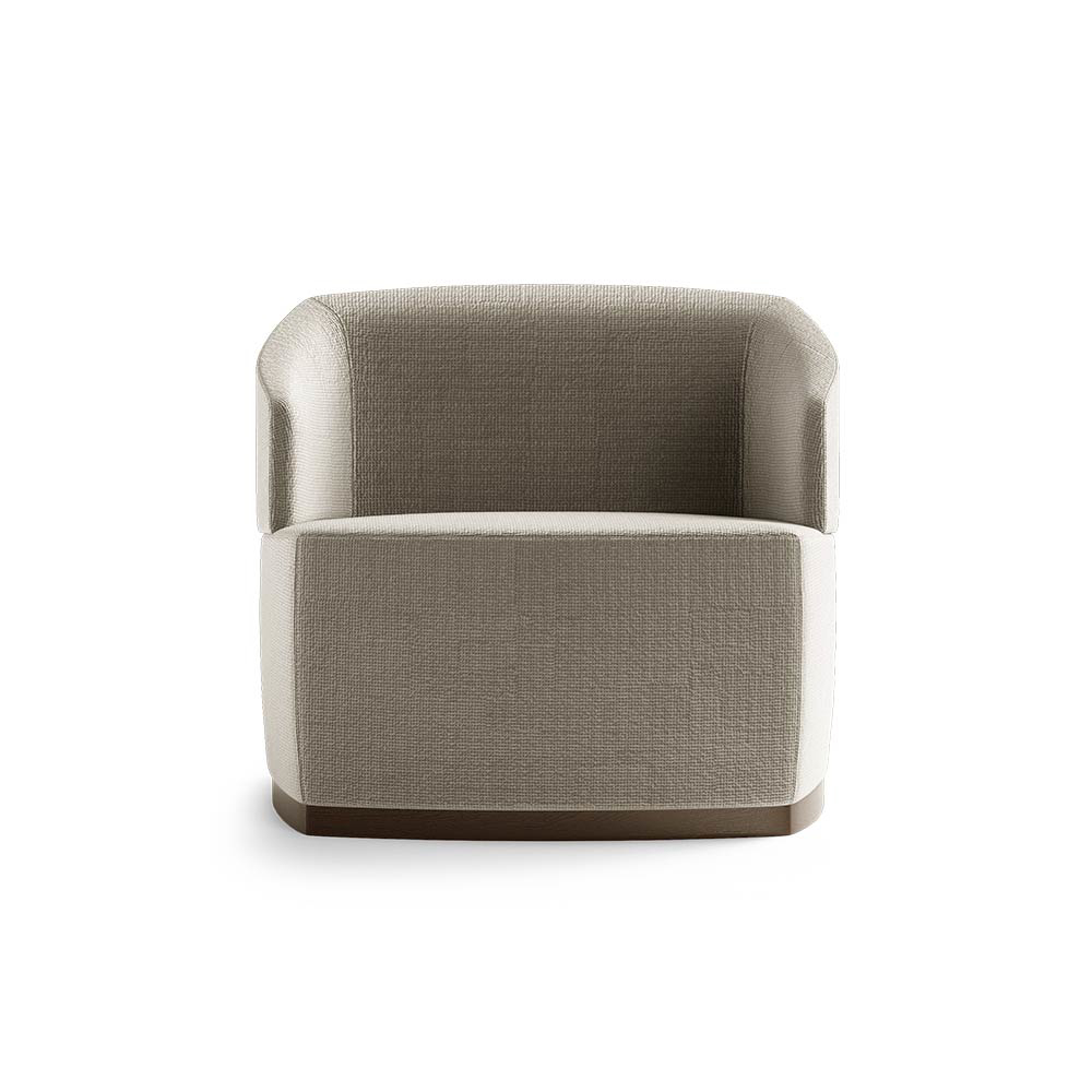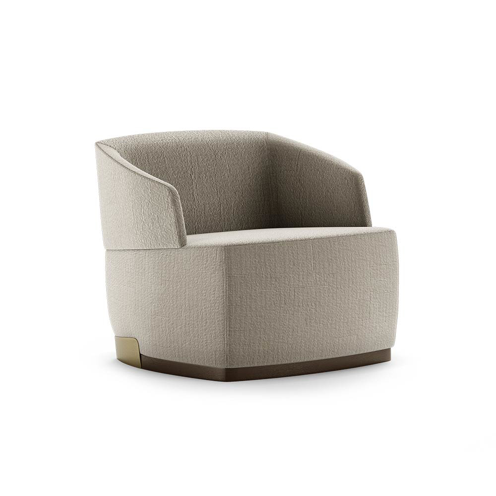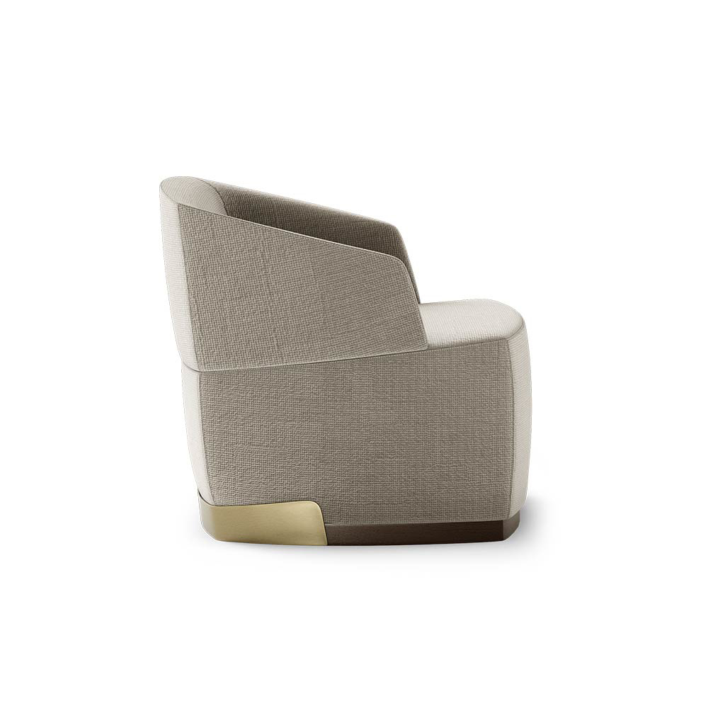 Materials and Finishes: Moka Oak Stain Matte Wood, Fabric, Brushed Brass