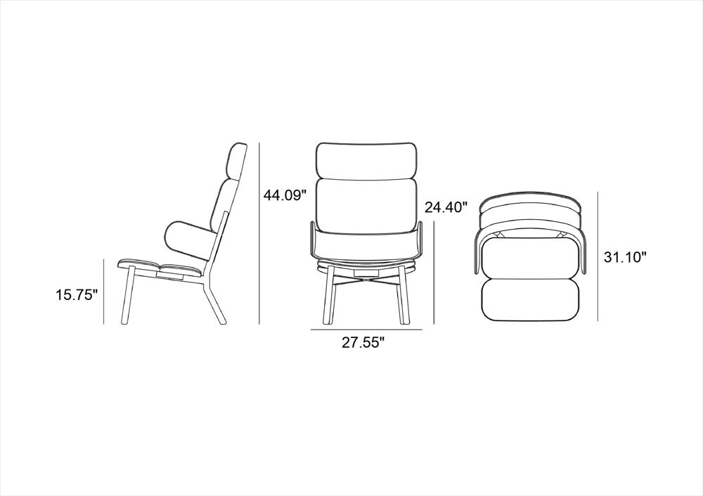 Solid beech wood structure, backrest and seat in curved plywood with expanded polyurethane foam.