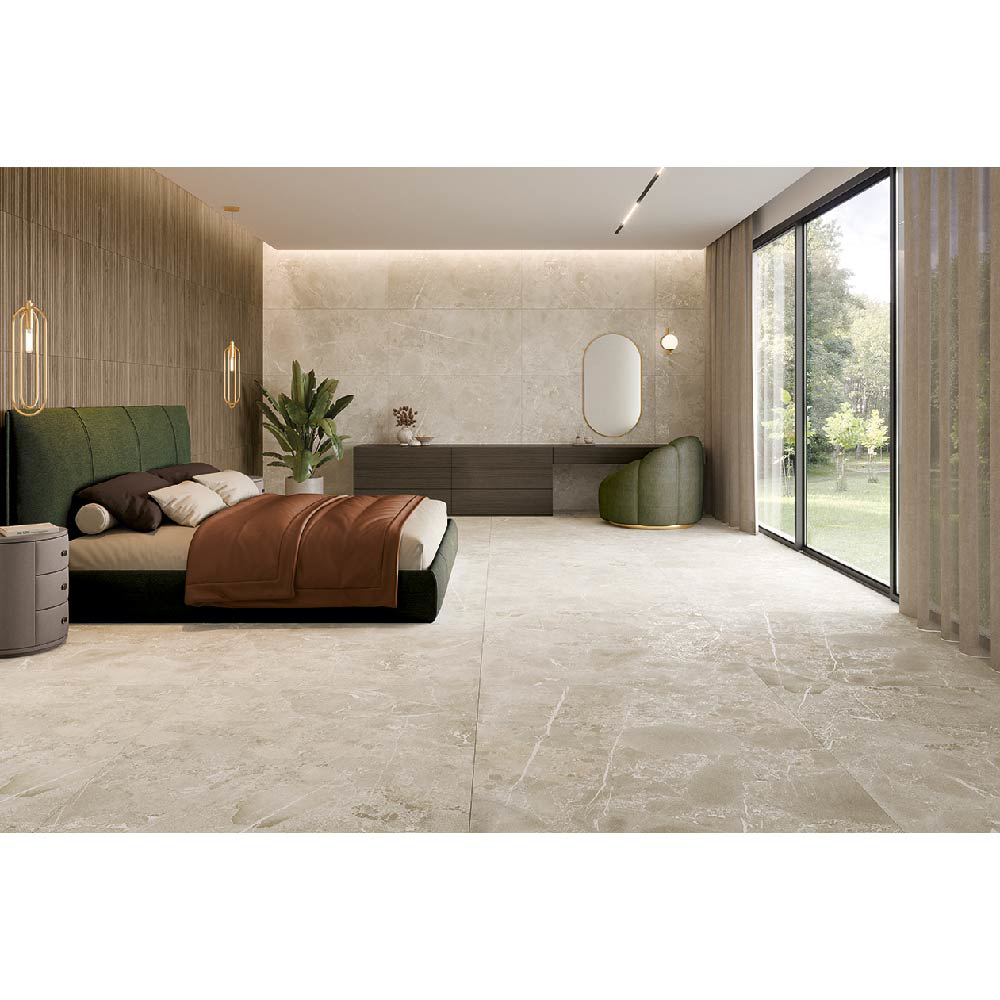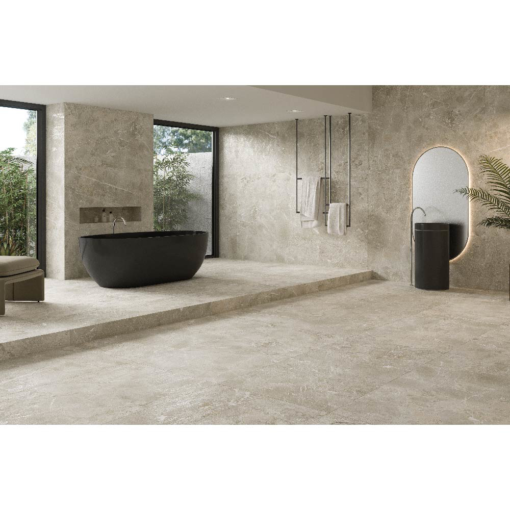 Highlands evokes the raw beauty of the Scottish countryside. Its design fuses conglomerate stones, creating a rich, textured background. On top of this, fine white veins are superimposed, shimmering with a luminous effect, aimed at those who value extreme elegance, surface effects and micro-reliefs.
