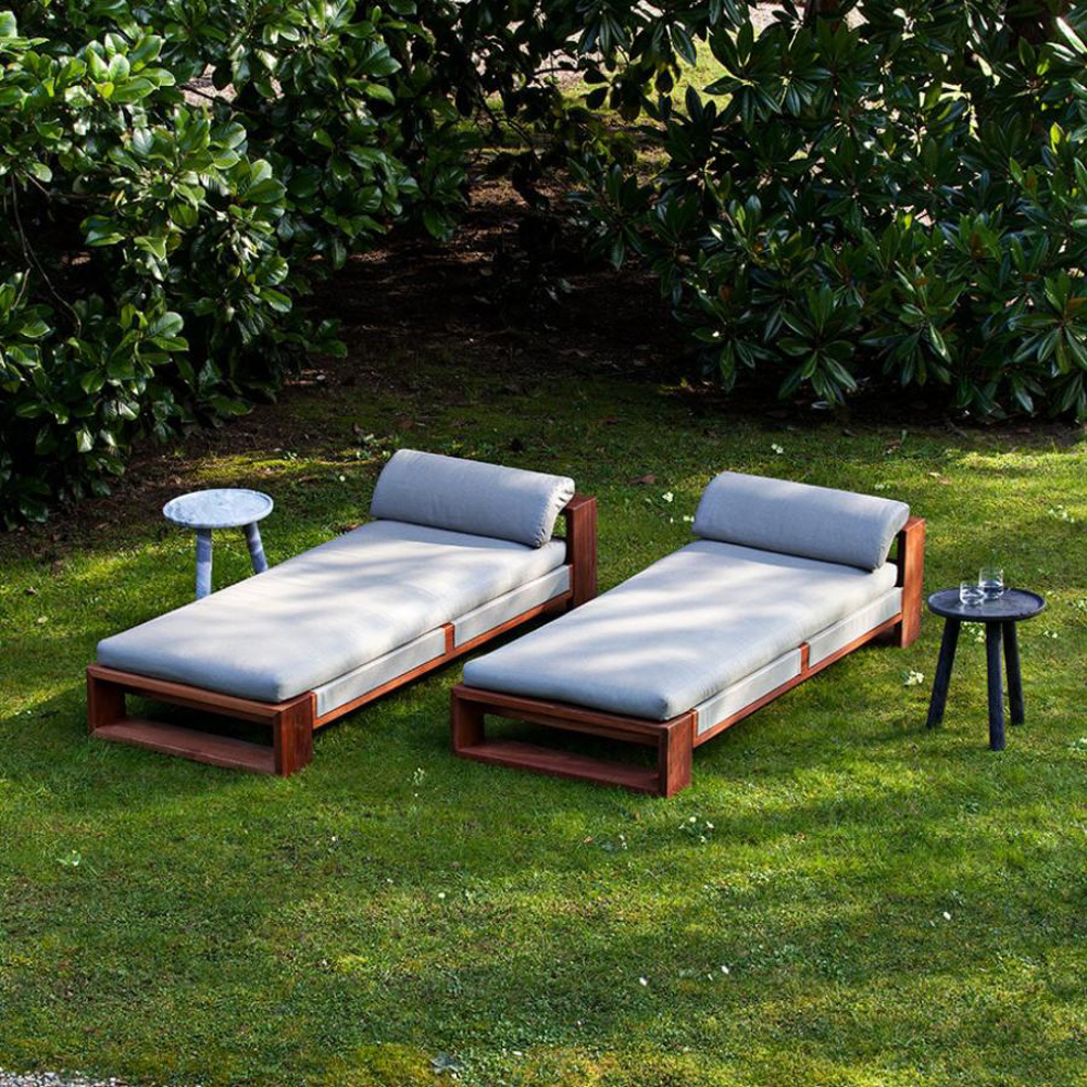 The hedonistic nature of Bellagio Chaise Longue makes it an oasis of unmissable outdoor pleasure. Strict geometries and precious materials: the Bellagio Collection is a clear homage to a majestic design, able to characterize every environment with a strong identity. The closed cell structure of the elements is entirely made of Sapelli mahogany and upholstered in nautical fabric, available in every colour as per sample card.