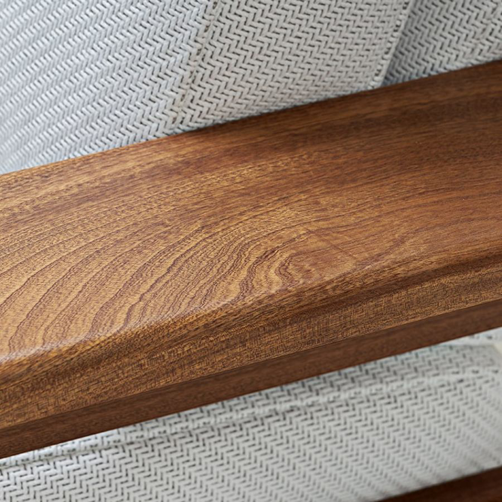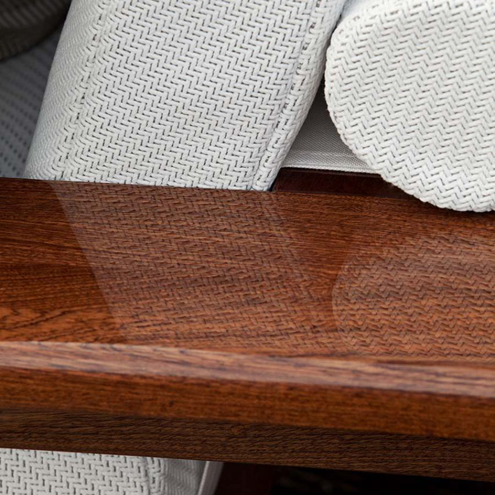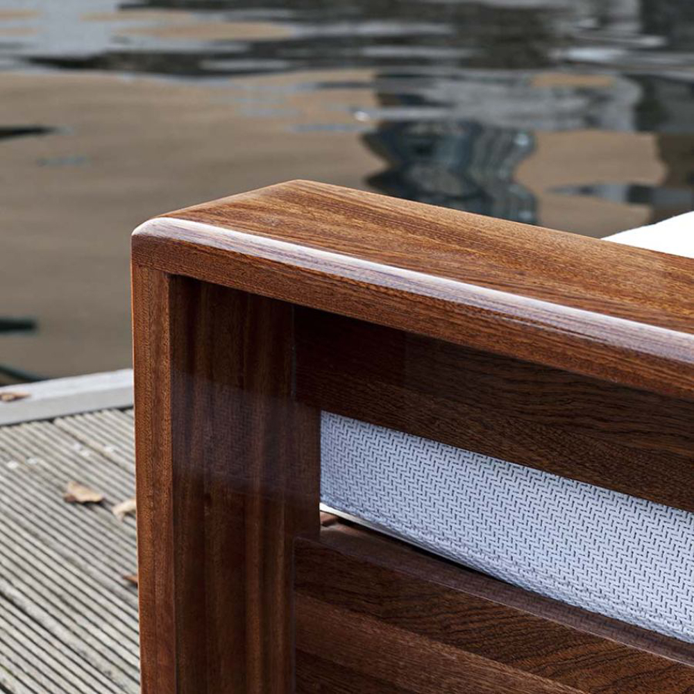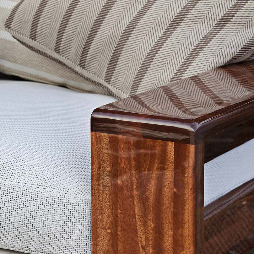 The closed cell structure of the elements is entirely made of Sapelli mahogany and upholstered in nautical fabric, available in every colour as per sample card.Designer: