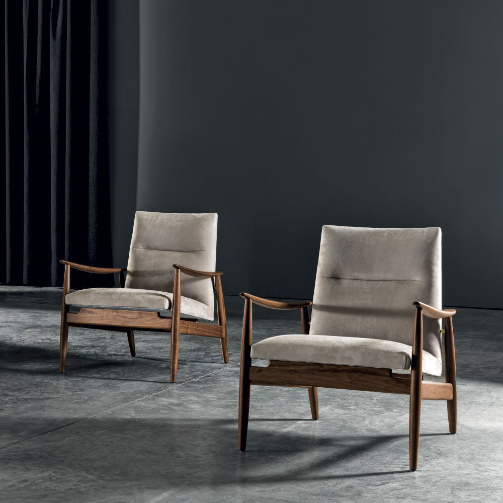 Armchair with vaguely retro lines enhanced by the soft match upholstery.Elegant and delicate – Biancamano is made in solid wood –