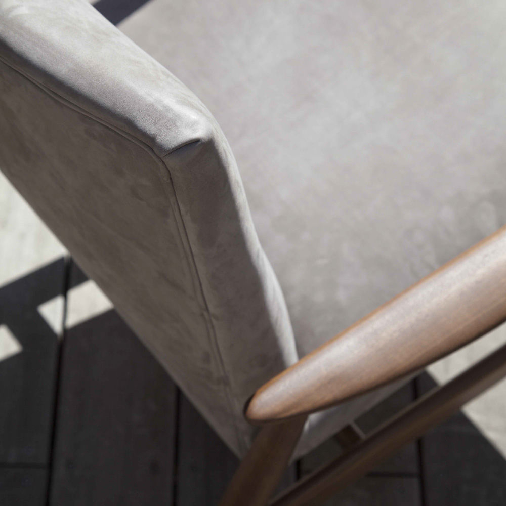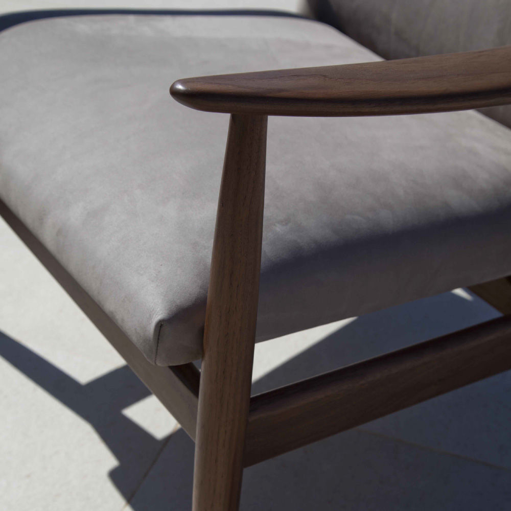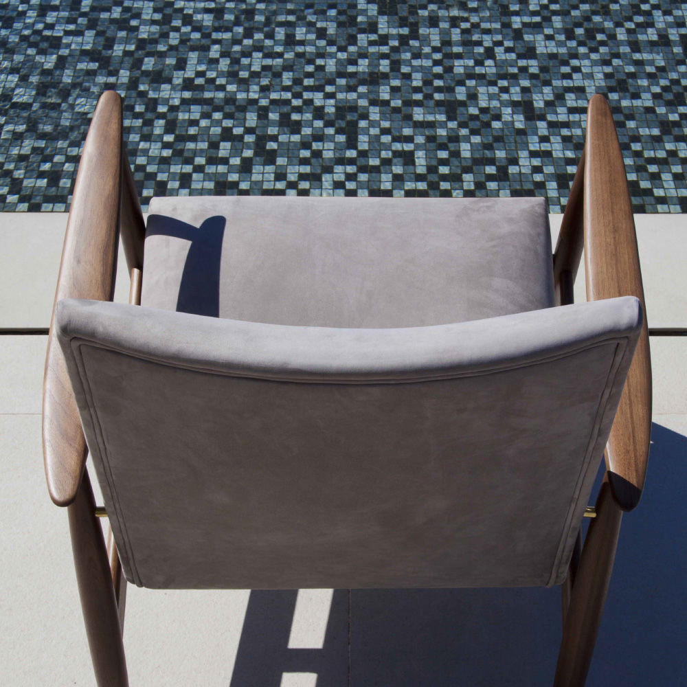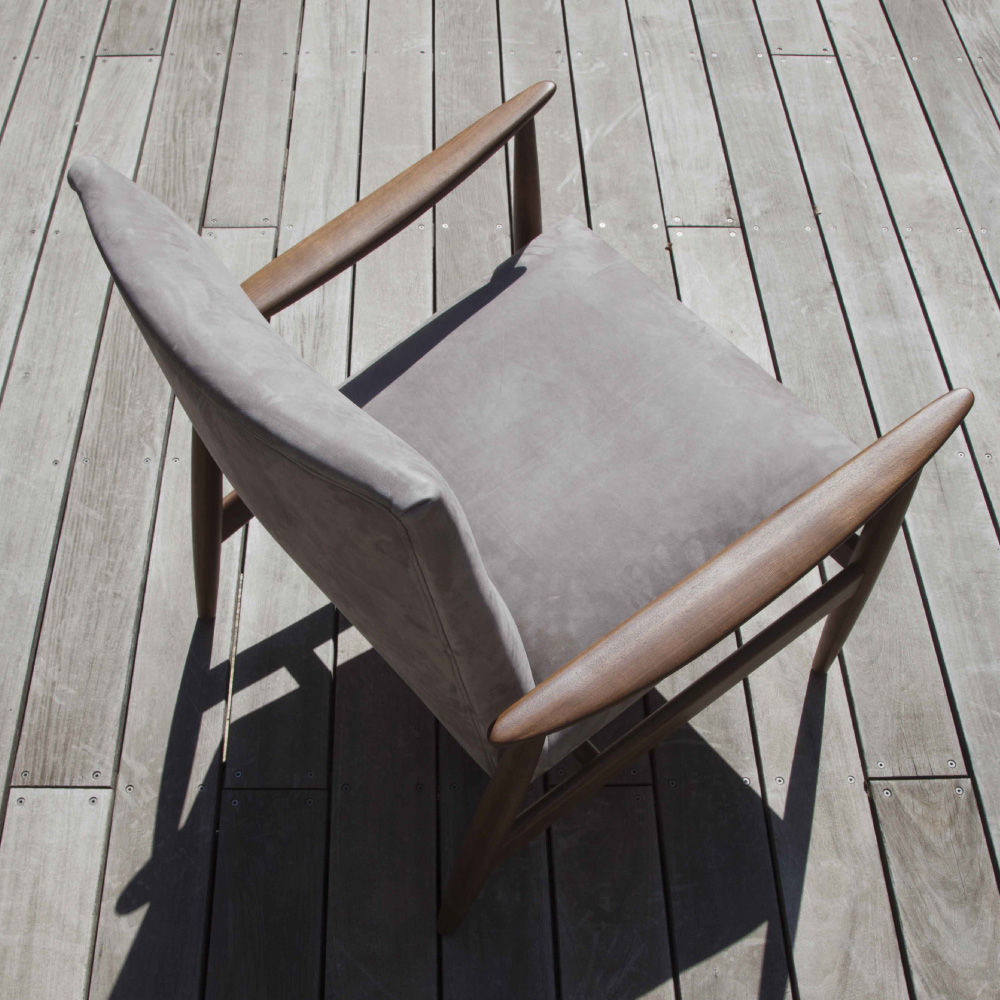 Armchair with vaguely retro lines enhanced by the soft match of upholstery. Elegant and delicate – Biancamano armchair is made in Iroko solid wood – skilfully chosen both for structure and armrests. Nuances and essences plays: Biancamano is a strong contrast and a delicate harmony too. Thanks to its minimal lines, it perfectly for completly your outdoor patio.