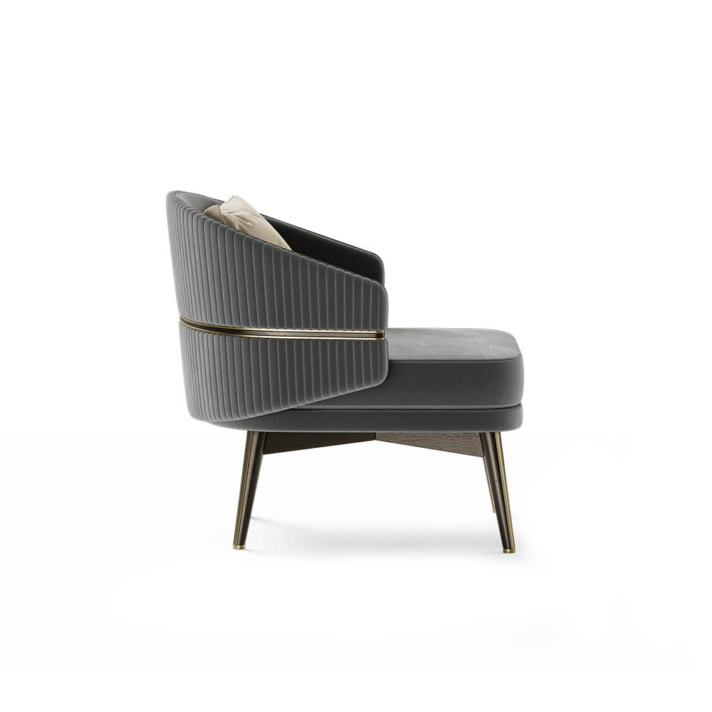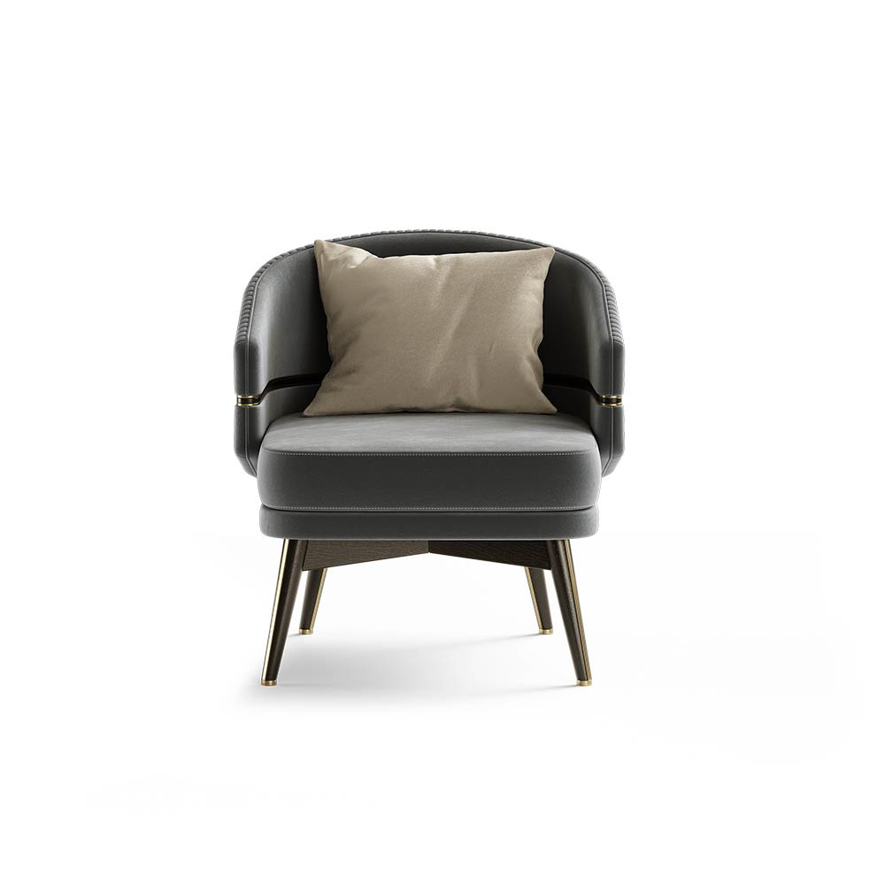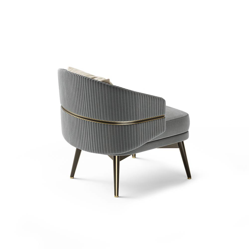 Materials and Finishes: Black Stained Oak Matte Wood, Fabric and Brushed Brass