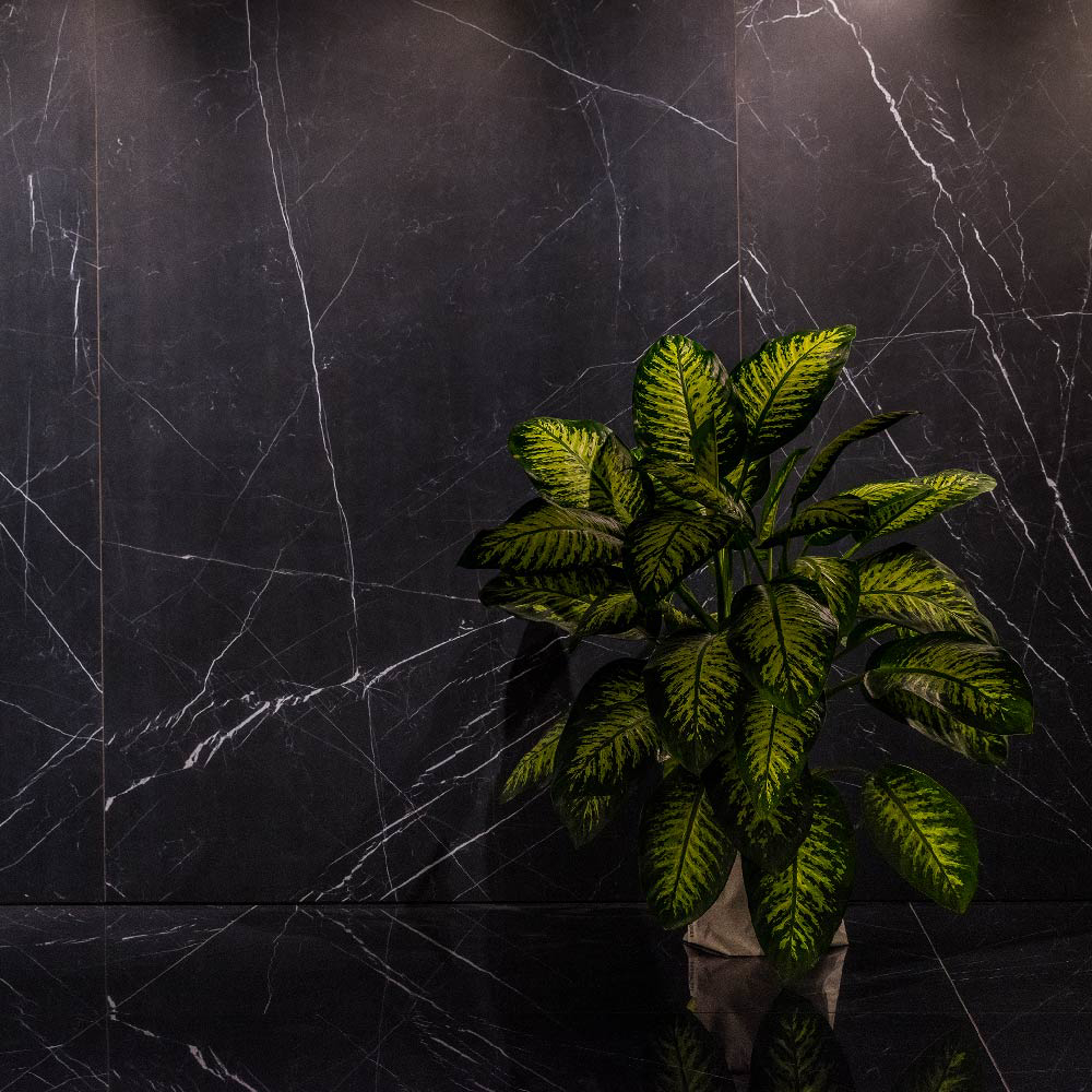 With its deep black background and striking white veining, Black Marquinia transforms interiors into bold, elegant spaces. Available in large-format slabs, it combines dramatic aesthetics with the durability and functionality of premium ceramic surfaces.