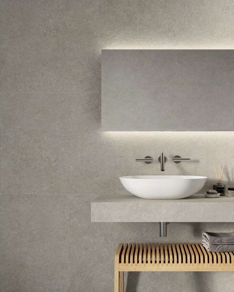 The essence of unique stone: Boost Mineral Collection, with its fine and delicate shades, combines indoor and outdoor ceramic surfaces. An essential surface for contemporary spaces with an impactful look, due to its naturalness and elegance.
