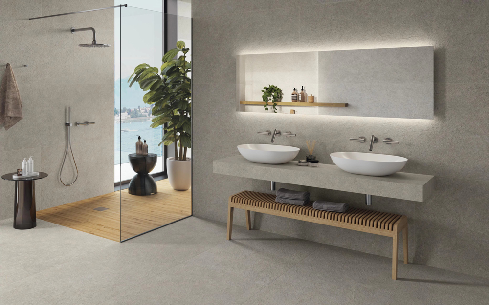 The essence of unique stone: Boost Mineral Collection, with its fine and delicate shades, combines indoor and outdoor ceramic surfaces. An essential surface for contemporary spaces with an impactful look, due to its naturalness and elegance.