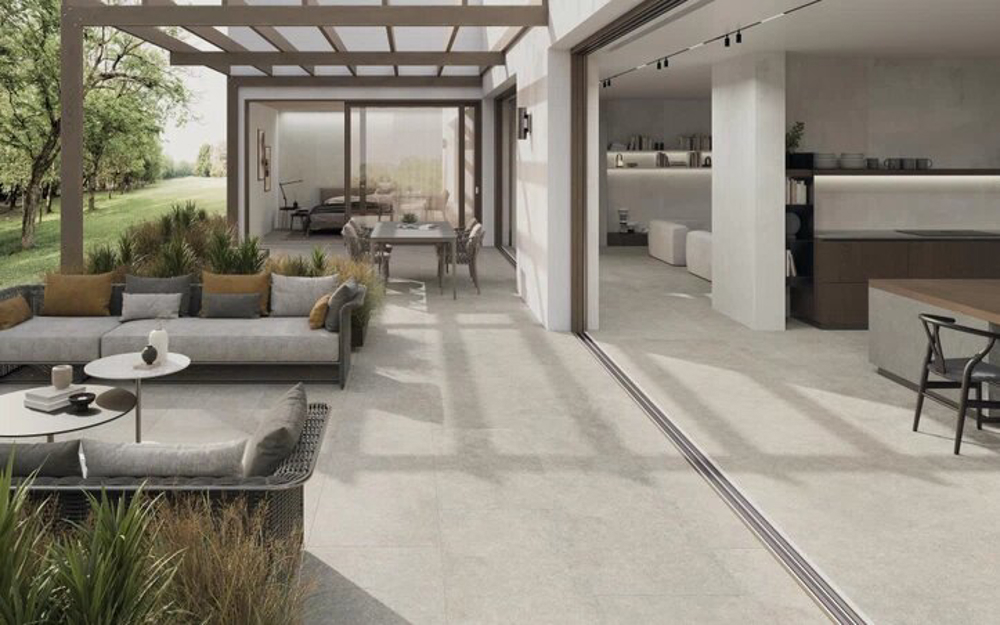 The essence of unique stone: Boost Mineral Collection, with its fine and delicate shades, combines indoor and outdoor ceramic surfaces. An essential surface for contemporary spaces with an impactful look, due to its naturalness and elegance.