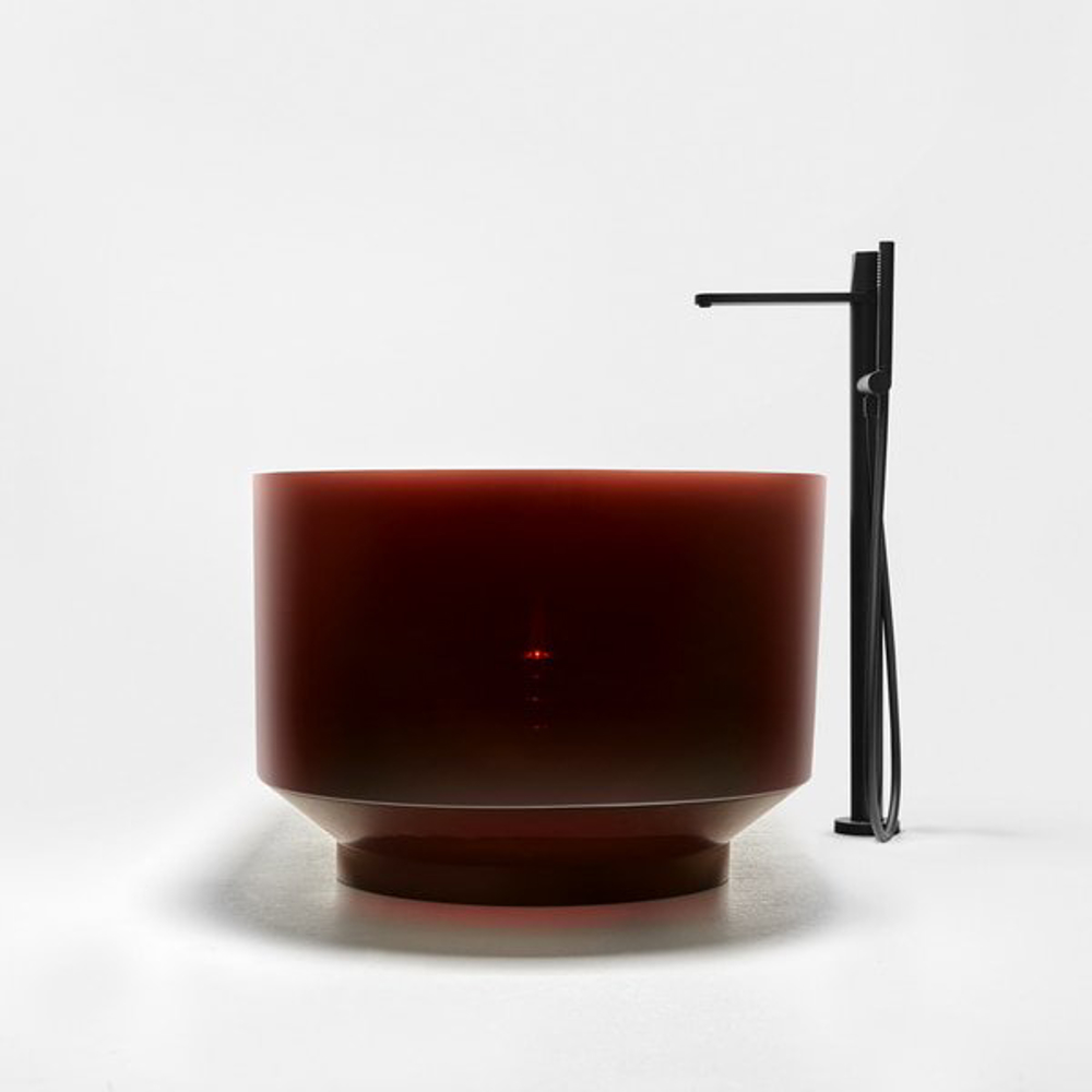 Essential shape, a welcoming volume and iconic in its essence. The freestanding Borghi bath is made of Cristalmood or Icemood. The marked chromatic personality and the typical reflections of the material make it an absolute protagonist of the space, a remarkable element around which to build the bathroom environment. The volume is pure, capacious, ergonomic, lightened by a narrow base.