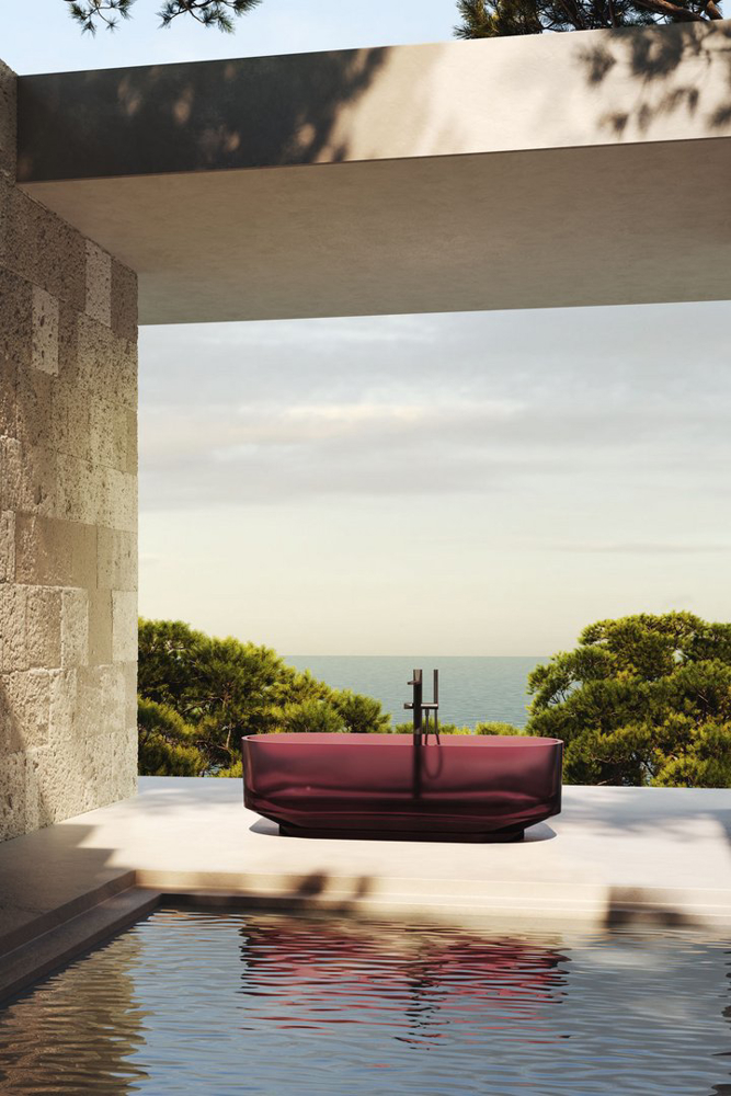A detail that defines an image, a solution that determines a feeling of floating in space. Perfect in its pure geometry, balanced in the proportions and overlapping volumes, modern with its subtle edges, the Borghi bathtubs are available in the entire color range of the antoniolupi Cristalmood and Icemood and in the new Mostato, Barriques, Vespero and Notturno.