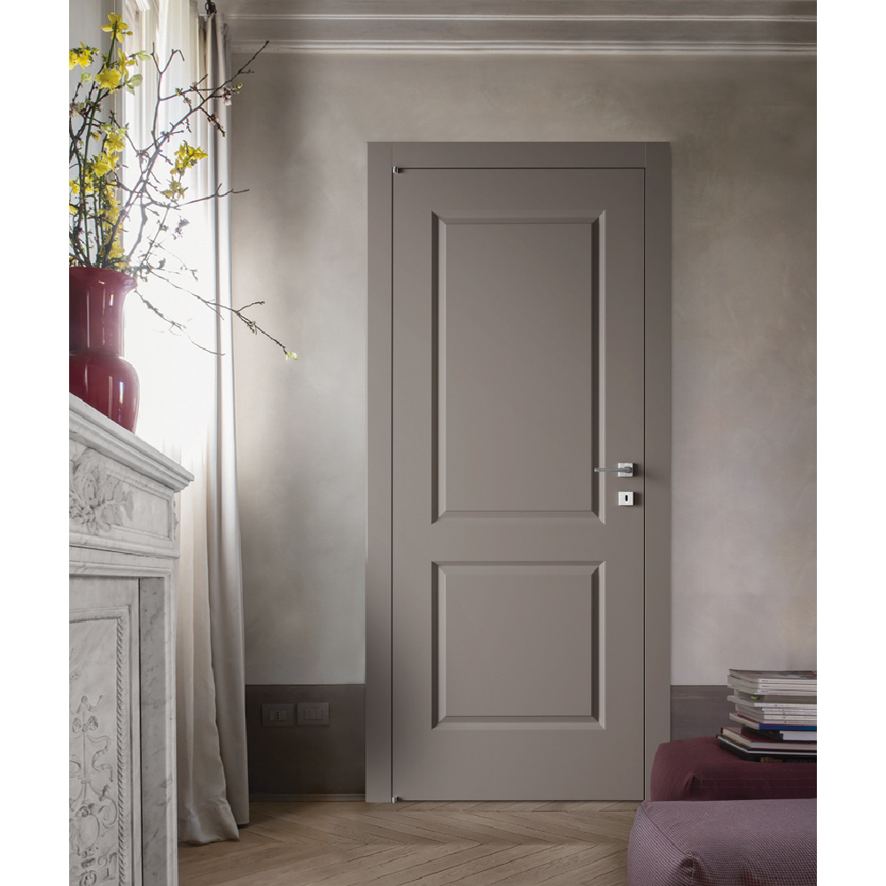 The moulded door with a pattern in relief is ideal in classic spaces. It embellishes rooms with a sophisticated taste, where this type of design fits in perfectly.