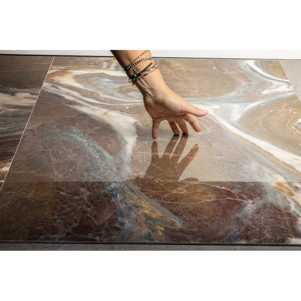 With its rich brown tones and elegant veining, Brown Fusion transforms floors, walls, and feature surfaces into sophisticated, contemporary spaces. Available in large-format slabs, it combines striking design with durability and high-performance functionality, ideal for both residential and commercial projects.