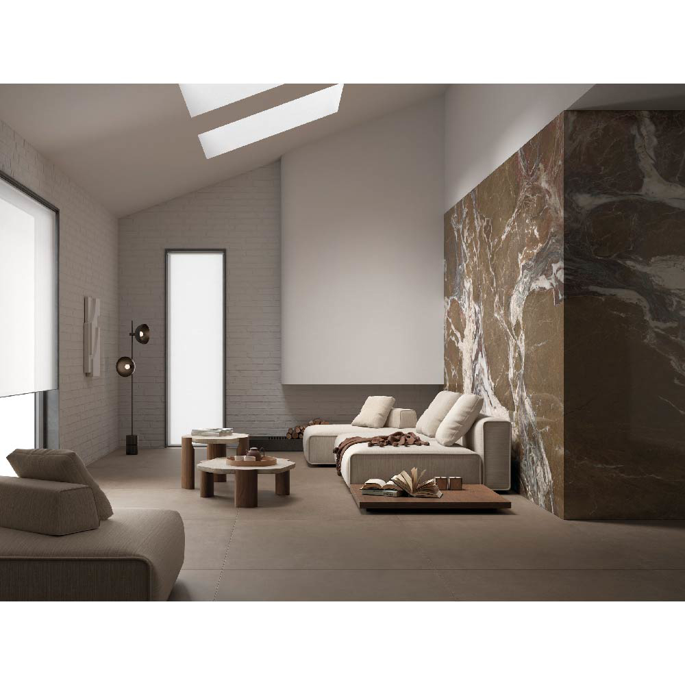 With its rich brown tones and elegant veining, Brown Fusion transforms floors, walls, and feature surfaces into sophisticated, contemporary spaces. Available in large-format slabs, it combines striking design with durability and high-performance functionality, ideal for both residential and commercial projects.